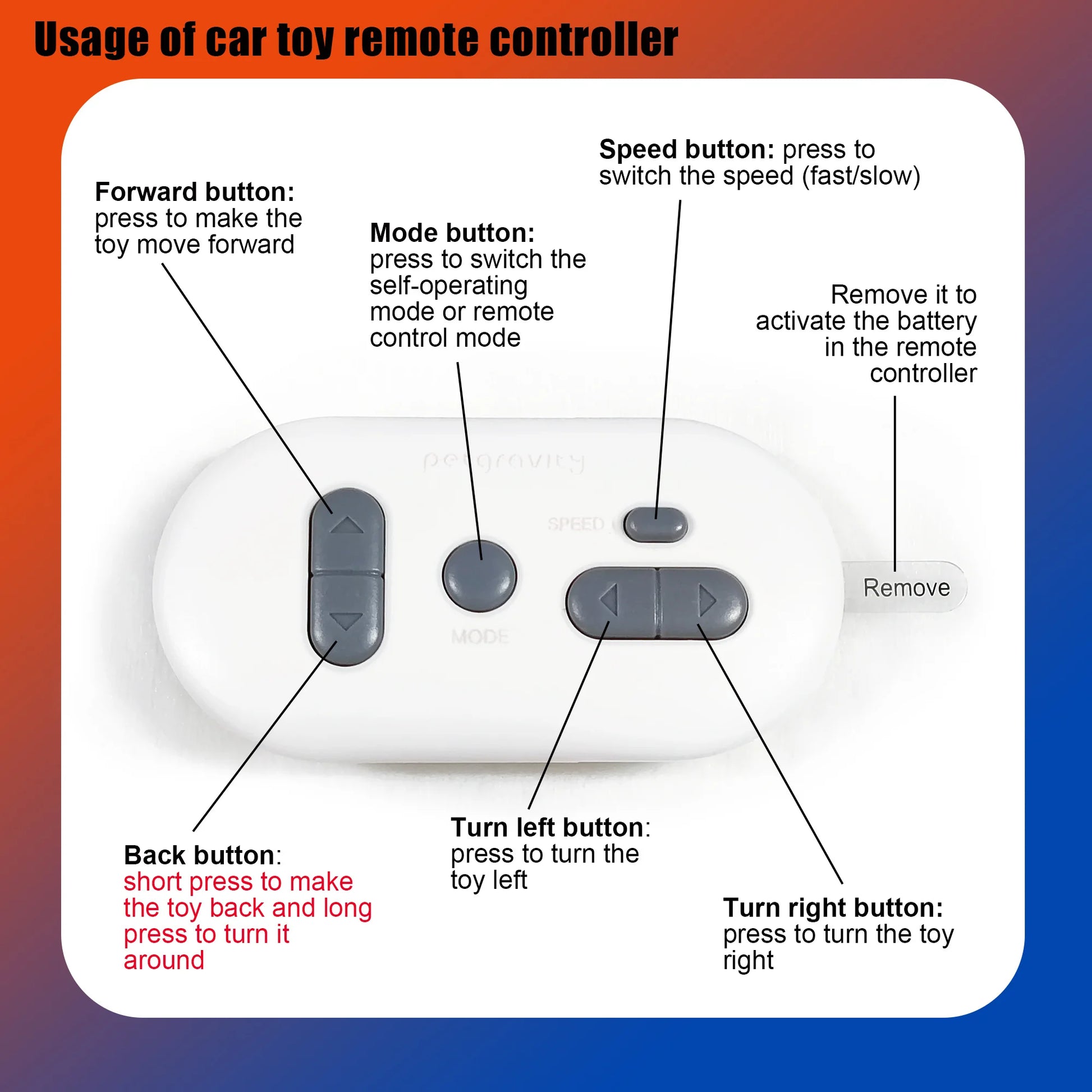 • Remote Control Functionality :Equipped with remote control functionality, this toy allows you to interactively control its movements, enhancing playtime with your pet.